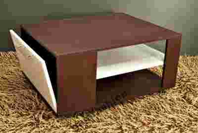 Prosta i zgrabna nowoczesna ława na kółkach. Nadająca się do zastosowania w wielu pomieszczeniach.