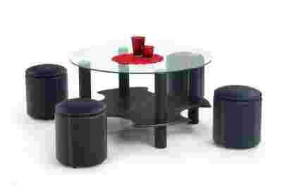 ŁAWA SZKLANA BELINDA Z PUFAMI
