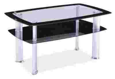 Przedmiotem aukcji jest ława Daria wersja C w kolorze Szkło hartowane z czarnymi obramówkami / dolna półka ze szkła czarnego / stelaż metalowy kolor aluminium.
