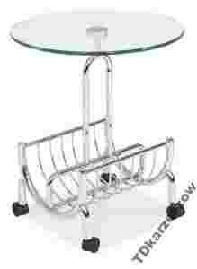 Mała okrągła ława szklanana metalowym stelażu na kółkach