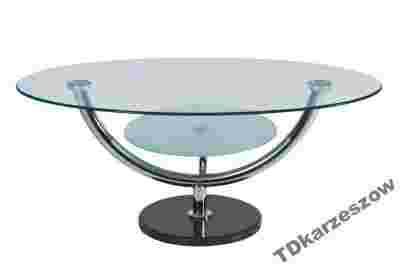 Średnia owalna ława szklanana metalowym stelażu