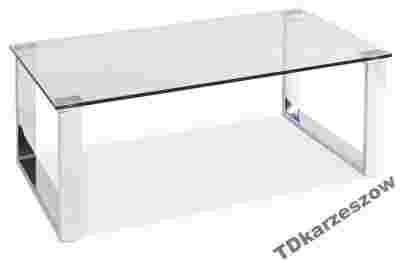 Dużą, prostokątna ława szklana na metalowym stelażu.