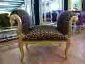 Replika efektownej i popularnej niegdyś we Francji w okresie ludwika XV- ławeczki przyściennej zwanej inaczej gondolką model ,,Cleopatra,, . Mebelek wykonany współcześnie charakteryzuję się przede wszystkim stylowym a zarazem ekstrawaganckim wyglądem. Całość zachowana w b.dobrym stanie ponieważ gondola jest nowa rozpakowana jedynie do zdjęć. Tapicerka wykonana z materiału o wyglądzie panterki ,Konstrukcja gondolki wykonana jest z drewna ręcznie rzeźbionego i pokrytego warstwą farby w kolorze złotym patynowanym dzięki czemu odnosimy wrażenie ,że mamy do czynienia z meblem epokowym a zarazem delikatną współczesnością . Warto nadmienić również fakt ,iż oferowany mebel to nie tylko finezyjna dekoracja ale ze względu na solidna konstrukcję może służyć jako mebel użytkowy tak, że w tym przypadku udało pogodzić się piękno z praktycznością. Oferowana gondolka co prawda posiada funkcję użytkową jednak jej generalnym przeznaczeniem jest pełnienie roli dekoracyjnej dlatego też swym pięknym wyglądem uzupełni i ozdobi każde wnętrze. Stan mebla nowy.