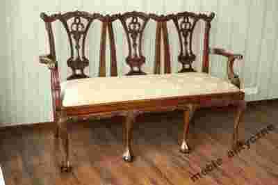 Ekskluzywna Ławeczka Chippendale. Wykonane zostały z drewna orzechowego w Anglii. Ławka charakteryzują się niebywałą elegancja. Stan Mebla jak na swój wiek jest bardzo dobry.