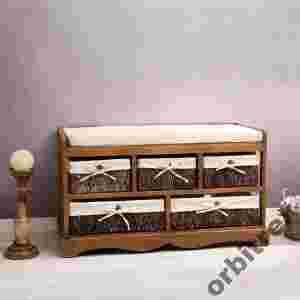 ŁAWKA KOMODA DREWNIANA KOSZE WIKLINOWE+ PODUSZKA