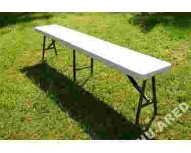 Bardzo ładna, praktyczna, solidna, składana ławka z odpornej na warunki atmosferyczne płyty z tworzywa sztucznego.