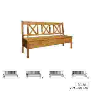 Sosnowa ławka pokryta jasnym woskiem, w standardzie oparcie z krzyżykami, możliwość doboru krzeseł o takim samym wyglądzie, dostępne są cztery wersje końcowe ławki wybór należy do Was.