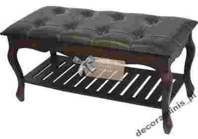 Ławka z Półką Ława Siedzisko Brązowe Skóra York
