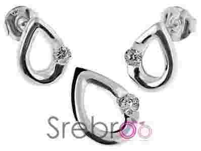 Komplet srebrny w kształcie łezki z cyrkonią, delikatny i błyszczący.