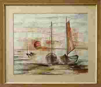 ŁODZIE ŻAGLOWE / akwarela / II poł. XX w. / sygn.