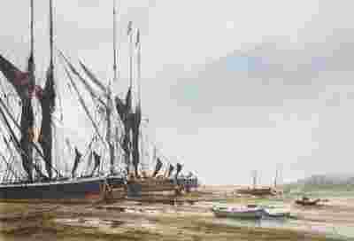ŁODZIE ŻAGLOWE, PO ODPŁYWIE (100% AKWARELI)