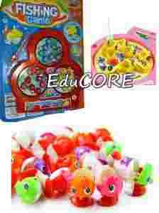 Trenuje refleks, zręczność i logiczne myślenie! gra dla 2 osób. Należy nakręcić grę - rybki zaczną kręcić się w koło otwierając i zamykając pyszczki. W środku pyszczków rybek jest mały magnesik... Za pomocą małej wędki wyposażonej także w magnesik trzeba złowić kolorowe rybki - też wyposażone w magnesik. To wcale nie jest takie proste! Zabawa budzi dużo pozytywnych sportowych emocji.
