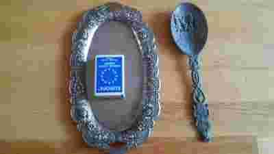 Łyżka (moze cynowa ) + metalowa tacka