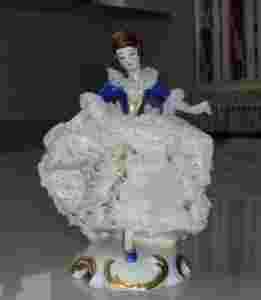 Śliczna, antyczna figurka damy z epoki.