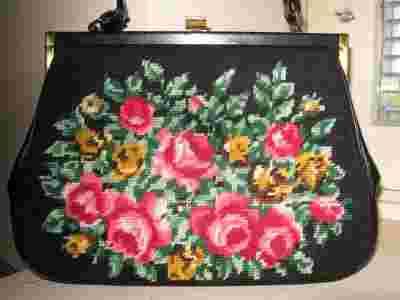 Śliczna gobelinowa torebka-kuferek retro vintage