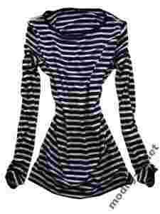 Śliczna Marynarska Bluzka Paski * AMISU * S