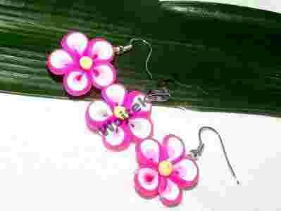 ŚLICZNE DŁUGIE KOLCZYKI I WISIOREK FIMO KWIATKI