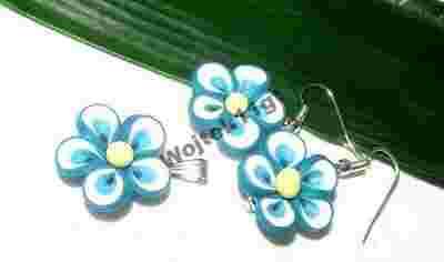 ŚLICZNE DŁUGIE KOLCZYKI I WISIOREK FIMO KWIATKI