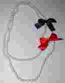 Śliczne długie perły + 2 kokardki broszki odpinane