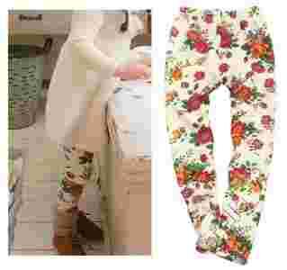 ŚLICZNE GETRY w kwiaty ECRU 104 P989 L