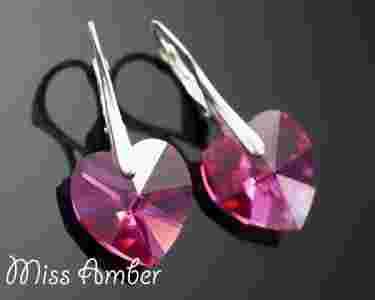 Śliczne kolczyki SWAROVSKI fuchsia SREBRO