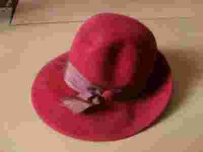 Śliczny kapelusz pluszowy bordowy damski