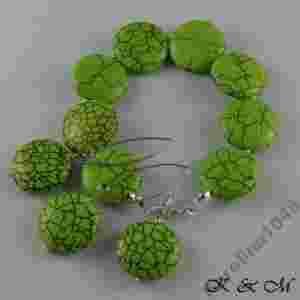 ŚLICZNY KOMPLET HOWLIT ZIELONY MONETY, SREBRO 925