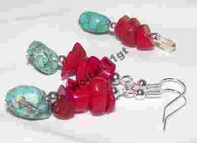 ŚLICZNY KOMPLET KORAL CZERWONY SIECZKA I TURKUS