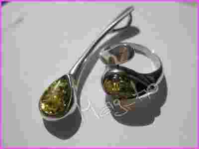 ŚLICZNY KOMPLET PIERŚCIONEK 16 I WISIOR BURSZTYN