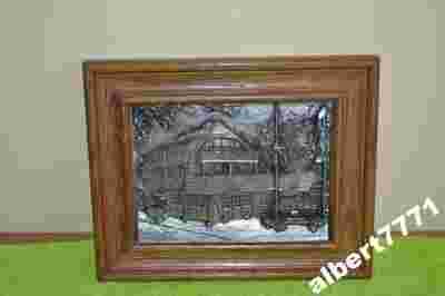 ŚLICZNY OBRAZ CYNOWY W DĘBOWEJ RAMIE