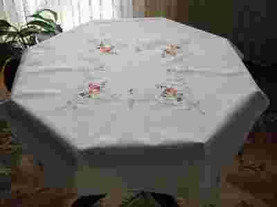 ŚLICZNY OBRUS HAFTOWANE HERBACIANE RÓŻYCZKI !!!