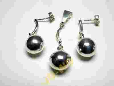 ŚLICZNY SREBRNY KOMPLET ZAWIESZKA I KOLCZYKI kulki