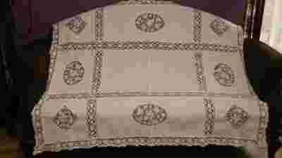 ŚLICZNY STARY OBRUS Z MEDALIONAMI