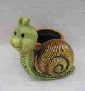 Ślimak z doniczką. Doniczka dekoracja dom i ogród.