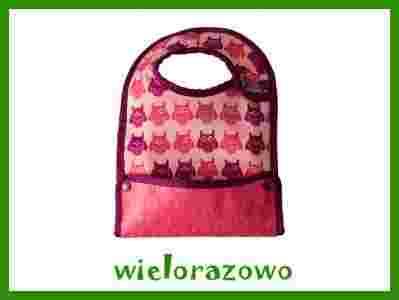 Dwustronny śliniaczek z kieszonką przeznaczony jest dla szkrabów, które same próbują już jeść (6miesięcy +). Śliniaczek ma sprytną kieszonkę, do której wpadną wszystkie kawałki jedzonka, które nie trafiły do buzi. Taka mała pomoc dla mamy i malucha, żeby przyjemność jedzenie nie wiązała się z ogromnym bałaganem. Strona z kolorowymi wzorkami jest łatwa w utrzymaniu. Można ją przetrzeć, a plamy jej nie lubią. Z drugiej strony dzidziuś ma kontakt z delikatnym mikropolarkiem, który wchłonie nadmiar wilgoci.