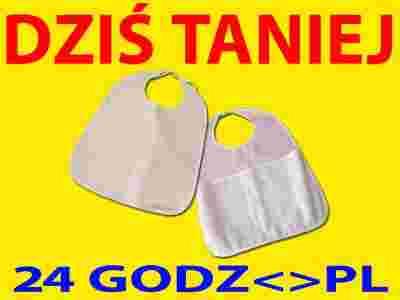 Śliniak z kieszonką zabezpiecza osobę mniej sprawną podczas spożywania posiłku przed zabrudzeniem odzieży. Śliniak nieprzemakalny PNSK 47 cm x 55 cm.