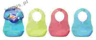 Śliniaki dostępne są w trzech kolorach- różowym, zielonym i niebieskim