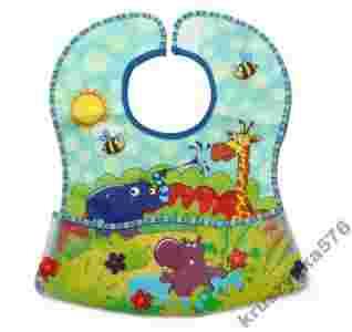 Śliniak kangurek posiada plastikową zewnętrzną warstwę pozwalającą na łatwe utrzymywanie w czystości, a także pod spodem został podszyty miękką bawełną frotte, chroniącą delikatną skórę dziecka. Posiada wygodne zapinanie na rzep. Specjalna kieszonka zatrzymuje resztki pokarmu, a odpięta dodatkowo zabezpiecza nóżki dziecka przed zabrudzeniem.