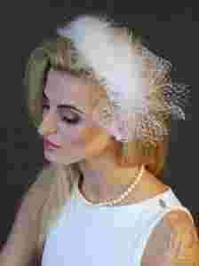 Delikatna opaska zdobiona piórami i upięciem z woalki.