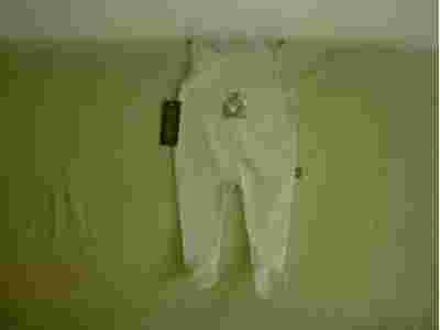 Przedmiotem aukcji są nowe bawełniane śpioszki z haftem na przodzie rozmiar 68. Śpioszki są w kolorze beżowym. Zapinane są na zatrzaski na ramionach.