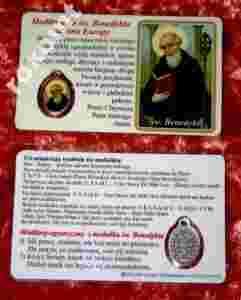 Św. Benedykt laminowany obrazek + medalik UNIKAT