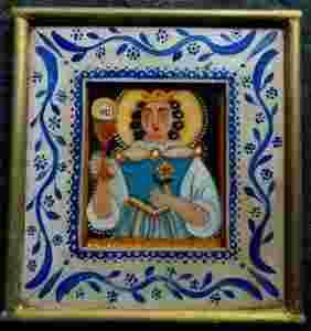 ŚWIĘTA BARBARA STARA IKONKA LUDOWA