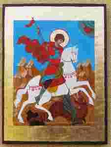 Święty Jerzy Walczący ze smokiem Ikona tempera