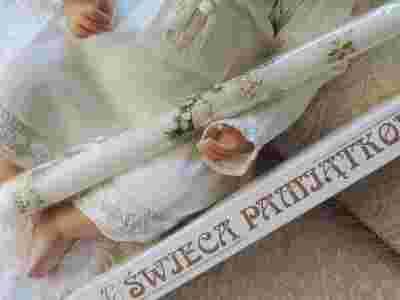 ŚWIECA na CHRZEST cudna KOLORY malowana 44 cm