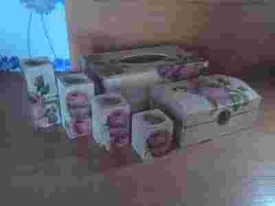 Świeczniki - szkatułka - chustecznik decoupage.