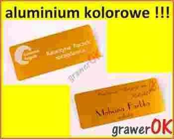 bardzo trwałego, lekkiego i eleganckiego identyfikatora z kolorowego aluminium o grubości 0,6 mm,