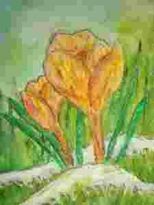 żółte krokusy - obraz akwarela