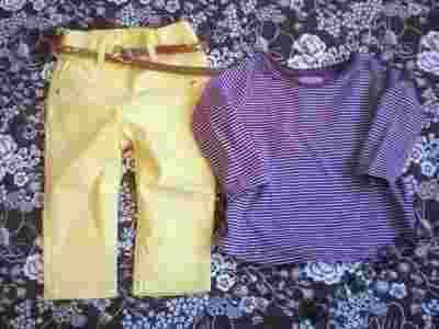 Żółte Spodnie pasek Bluzka NEXT Srebrna Nitka r.74