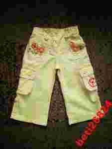 Żółte spodnie roll-up hafty kwiatki 80-86cm