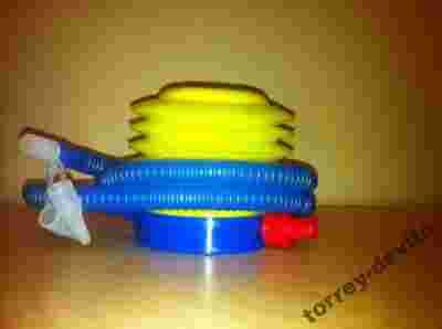 Żółto-niebieska pompka do roweru,piłki,materaca